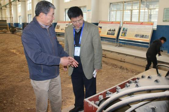 胡永彪院长就大型机械安全防护措施向张新祥组长进行讲解